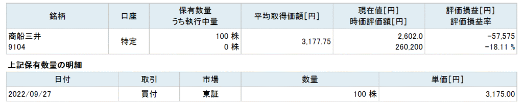 現在含み損となっている、「商船三井」の株をいつ売却するのかを考えておきたいと思います。