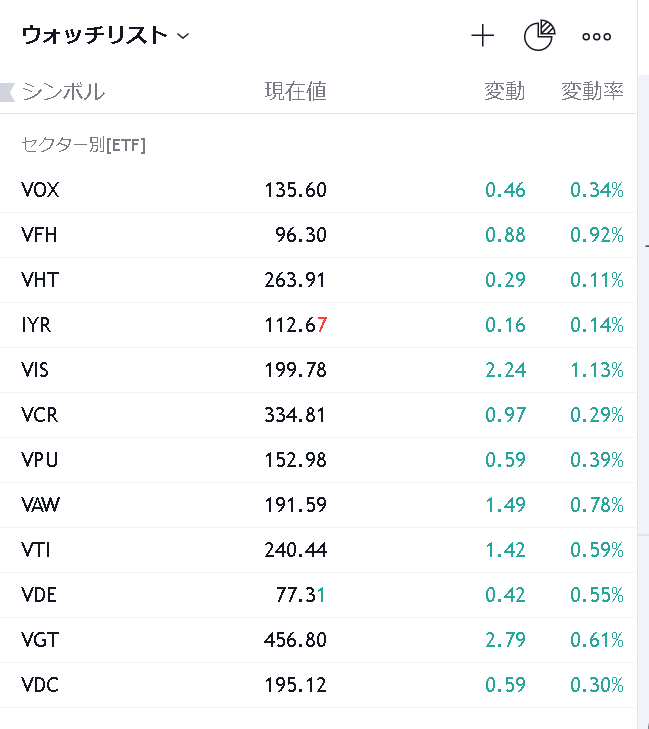 「セクター別」ETFを普段使用している米国取引ツール・アプリの「ウォッチリスト」などに登録しておきます。
