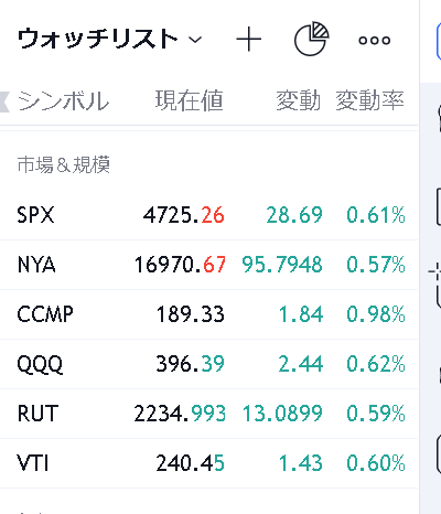 皆さんも、指標やETFを登録しておき、米国株式の動向を一目で分かるようにしてみてはいかがでしょうか。