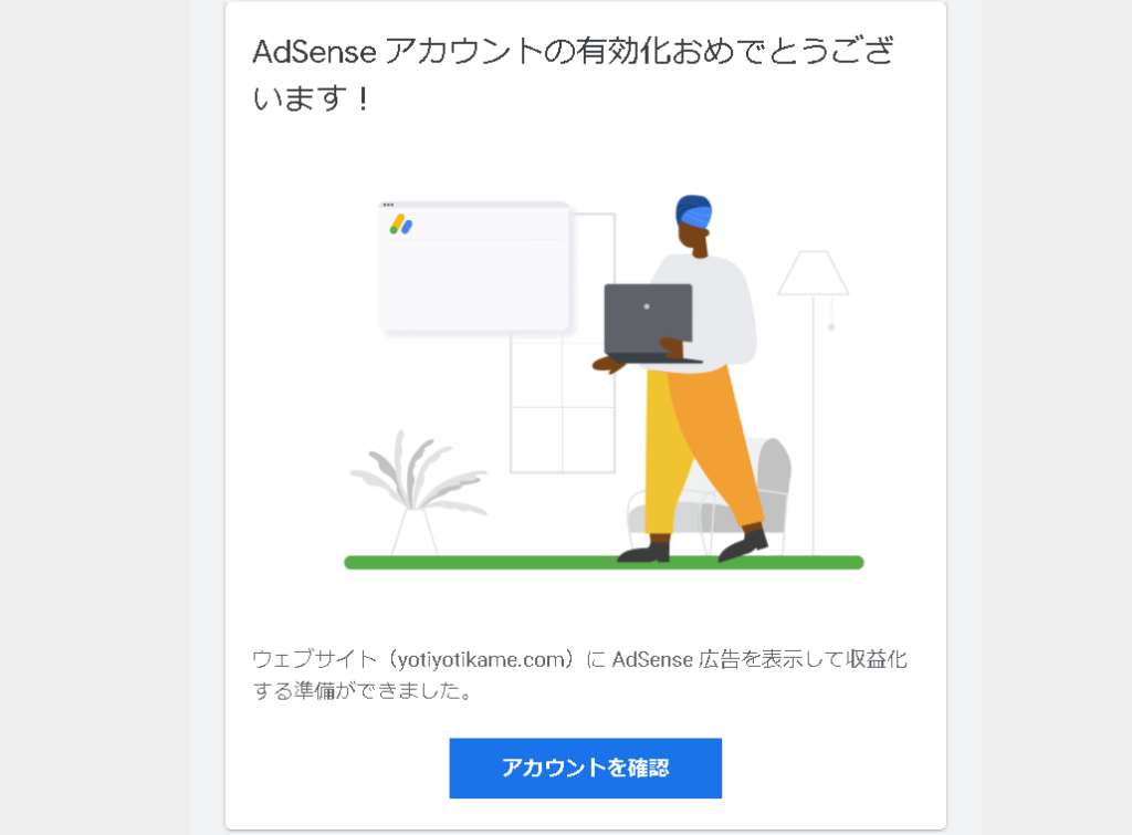 私は、Googleアドセンスに無事に合格できたことがとてもうれしかったです。