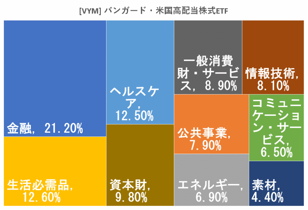 金融・・・・・・「SPYD」「VYM」大きい、「HDV」では小さい
