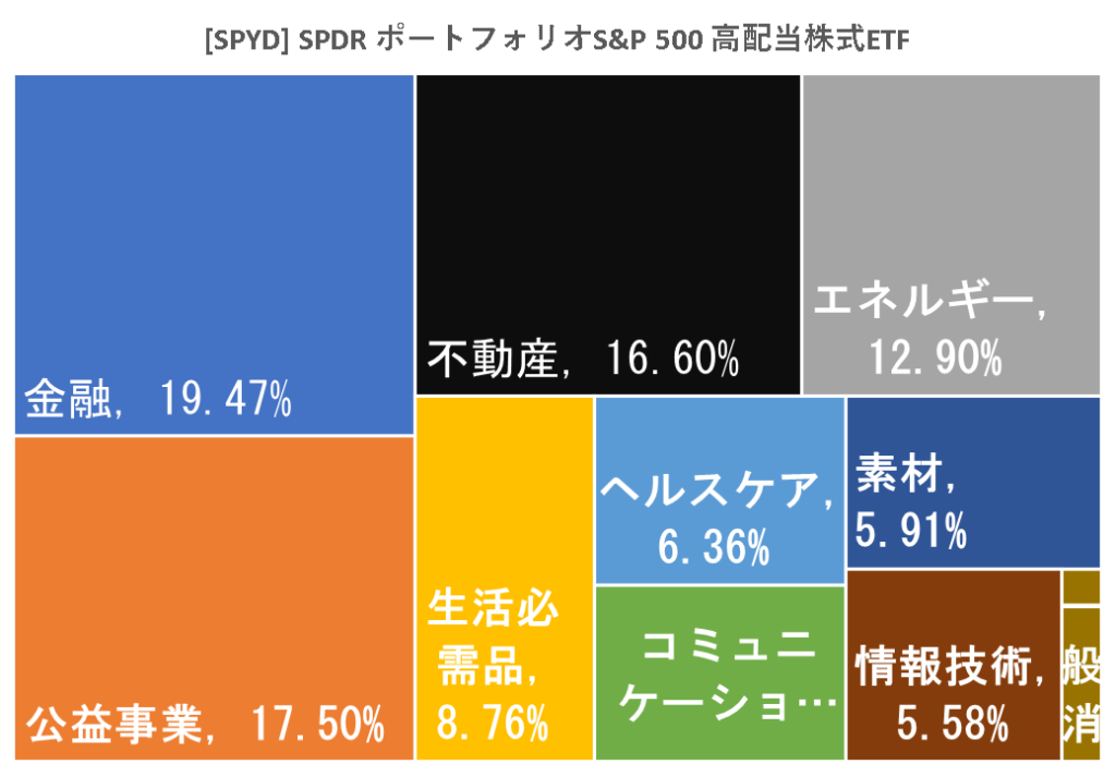 その分、「SPYD」は、不動産セクターが含まれているため、不況に弱い可能性があります。